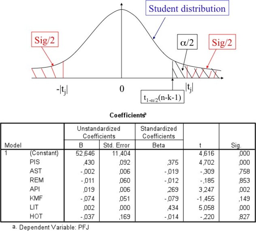 On peut donc voir que les variables significatives dans ce modèle sont PIS (tPIS=4,702), API (tAPI=3,247) et LIT (tLIT=5,058).