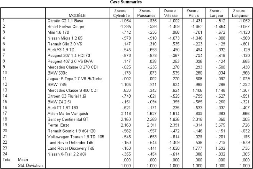 Prenons l'exemple « autos2004 », nous travaillerons donc sur les p Z score pour les n=24 individus :