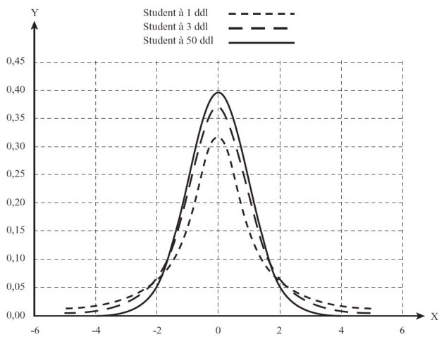 En effet, lorsque ν est grand, la loi de Student peut se confondre avec une loi normale centrée réduite.