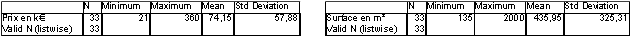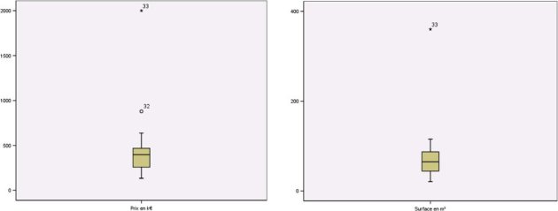 Plus précisément, les deux questions sont les suivantes :1) Peut-on construire un modèle pour expliquer le prix d'un appartement sachant sa surface ?2) A partir d'une surface donnée, quel est le prix « raisonnable » d'un appartement ?Avant de commencer une étude plus approfondie, il est important de commencer une étude descriptive de chacune des deux variables PRIX et SURFACE.
