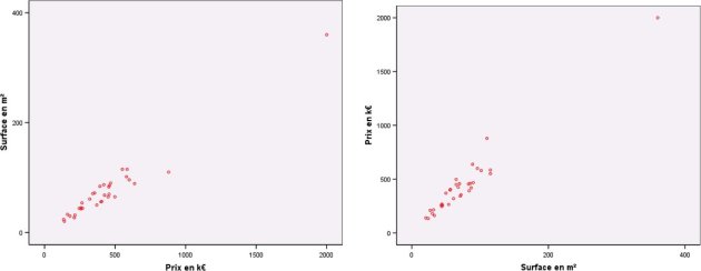 Dans ces circonstances, il est naturel que Prix soit en ordonnée et Surface en abscisse.