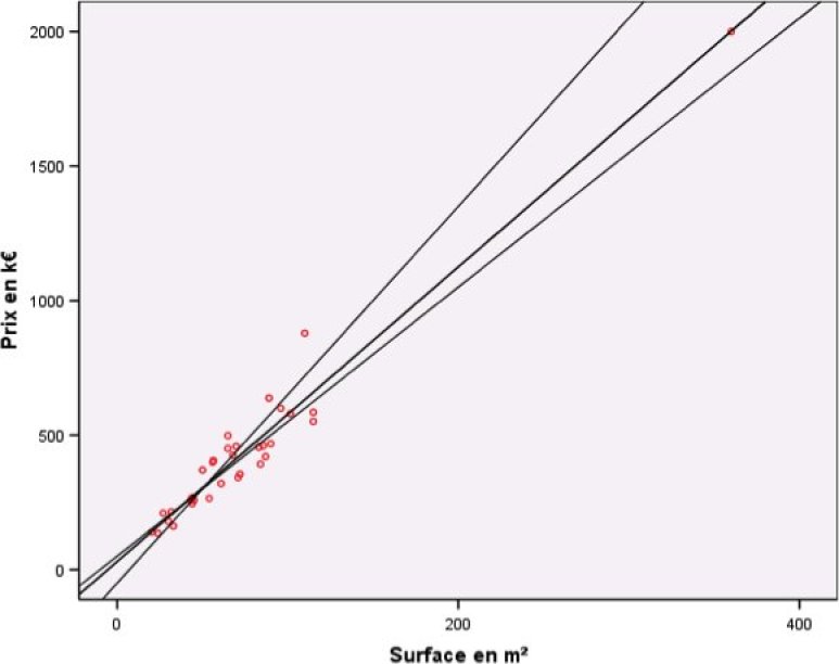 Pour répondre à ce problème, reprenons la première question « Peut-on construire un modèle pour expliquer le prix d'un appartement sachant sa surface ? ».