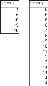 Les notes xi des n candidats du groupe 1 et les notes yi des m candidats du groupe 2 sont les suivantes :