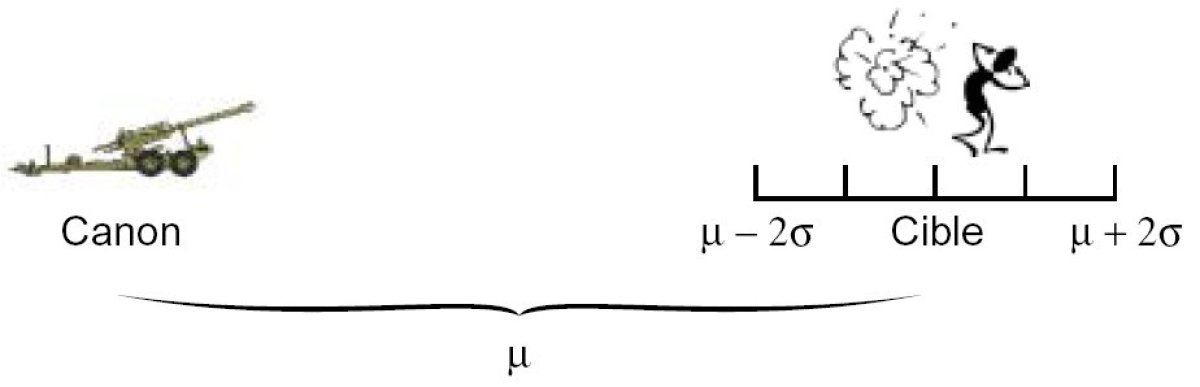 Let us imagine the range X of a TRF1 artillery canon follows a normal distribution with the parameters μ =24km and σ=25m